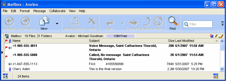 FirstClass Unified Communications enables you to access your phone and fax messages along with your email messages from your FirstClass client or from a web browser, just as you have always accessed your email. Phone messages are stored on the FirstClass server in standard .wav format, which is playable on virtually any platform.