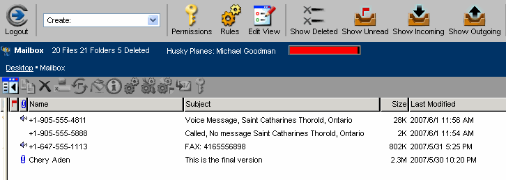 Once you have logged into your Mailbox, you can listen to new and saved messages and fax message envelopes. If you log in using a traditional fax machine you can print out your faxes to that fax machine.
