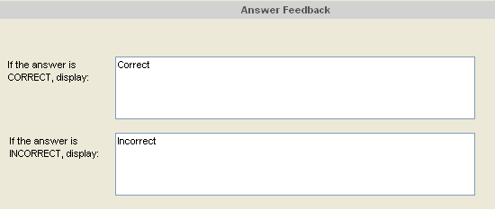 • whether to provide feedback to the student after each question (Provide feedback). If you select this option, click Display feedback to set the text that students will see after this question, then click Display question when you are finished.