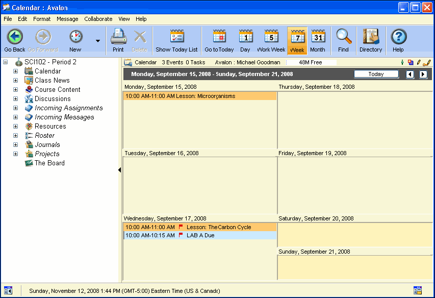The Calendar is used to record milestones and due dates for homework and projects, as well as make note of upcoming events. The student view is read only.