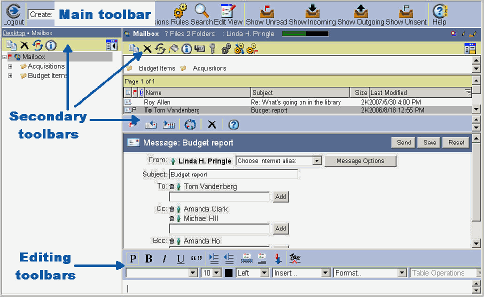 New message (automatically addressed if names were selected in Directory or Who's Online list).